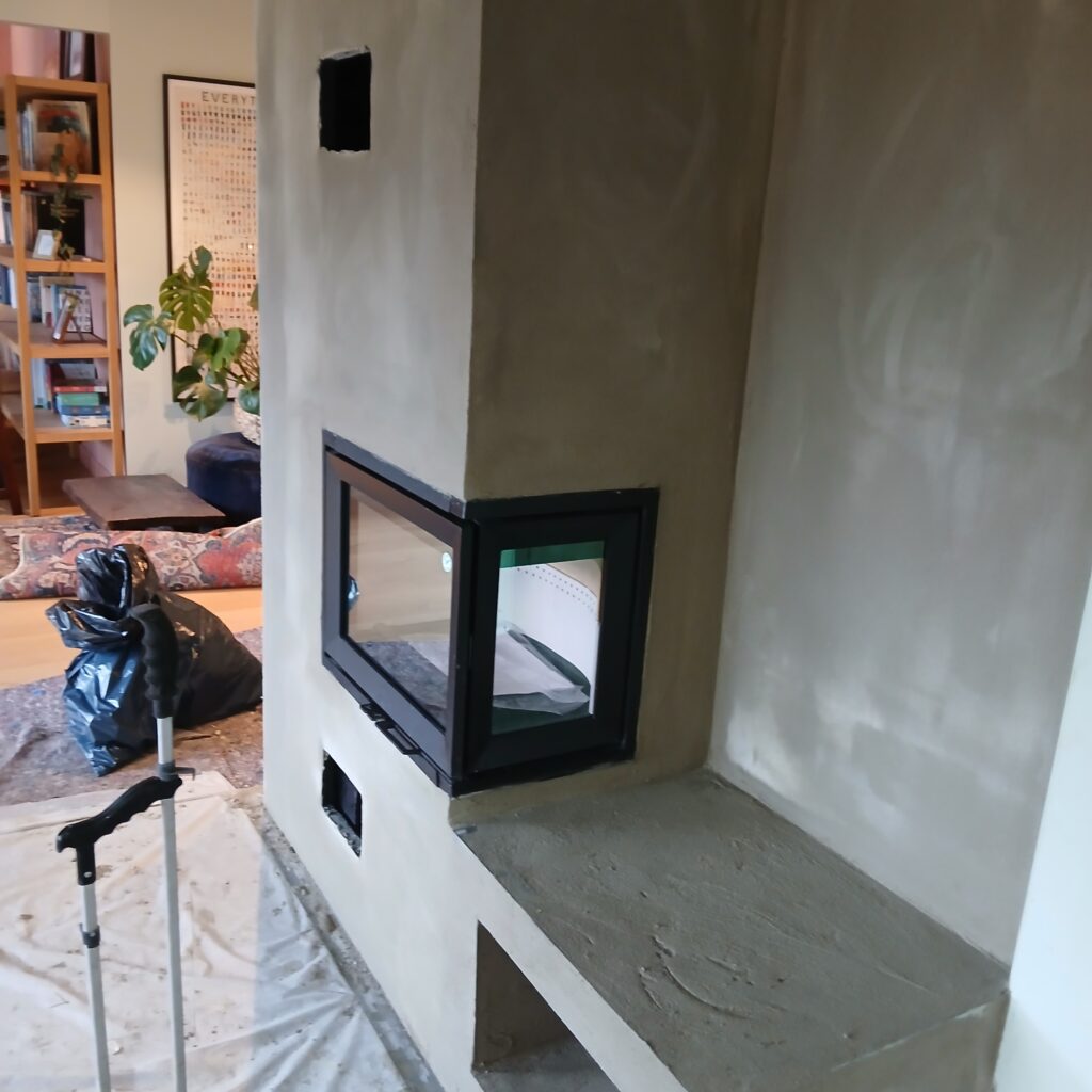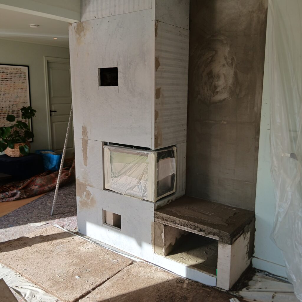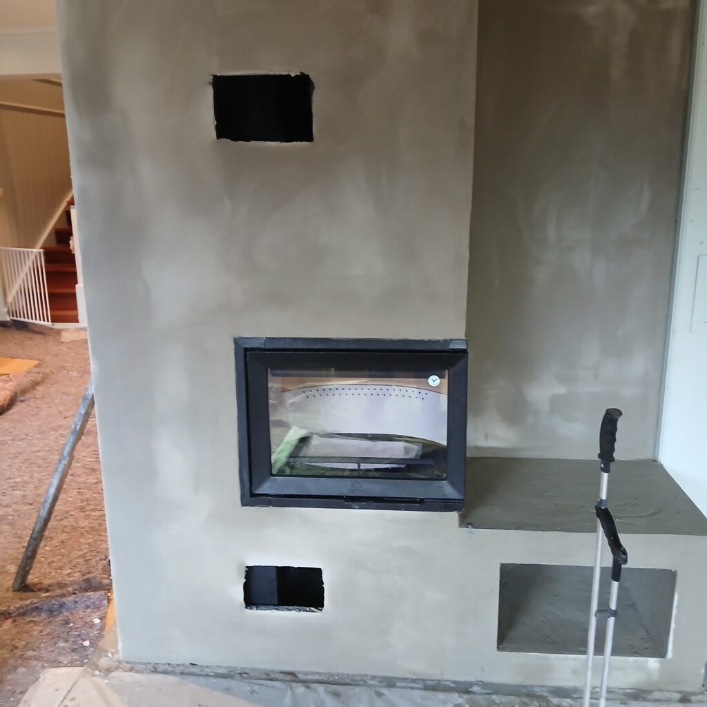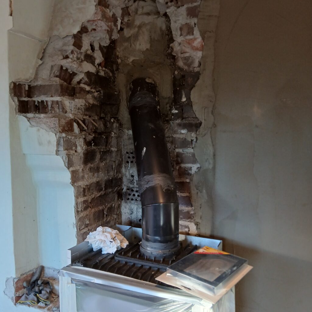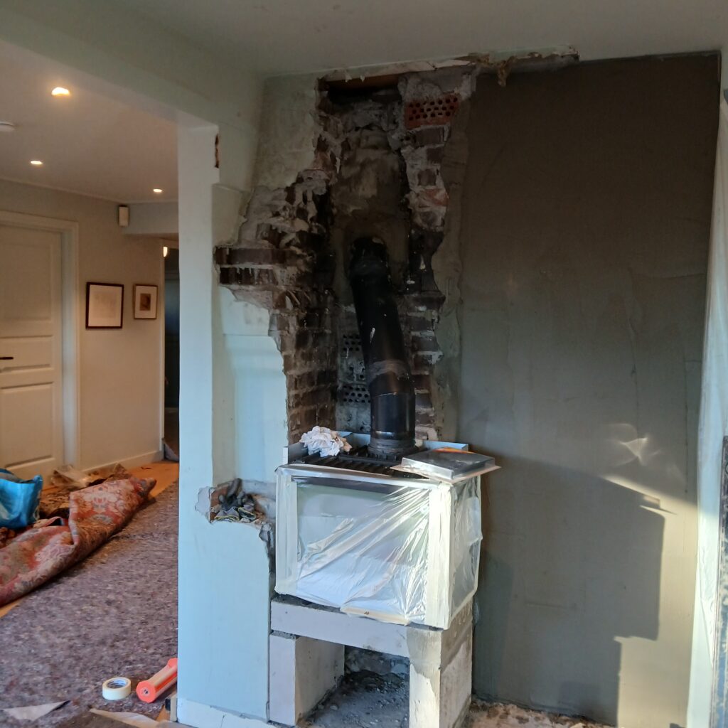Erstatte gamle murt ildsted med nytt rentbrennende. by Paraskeuas Tzortzis Fjerning av den gamle ildstedMontering av ildsted